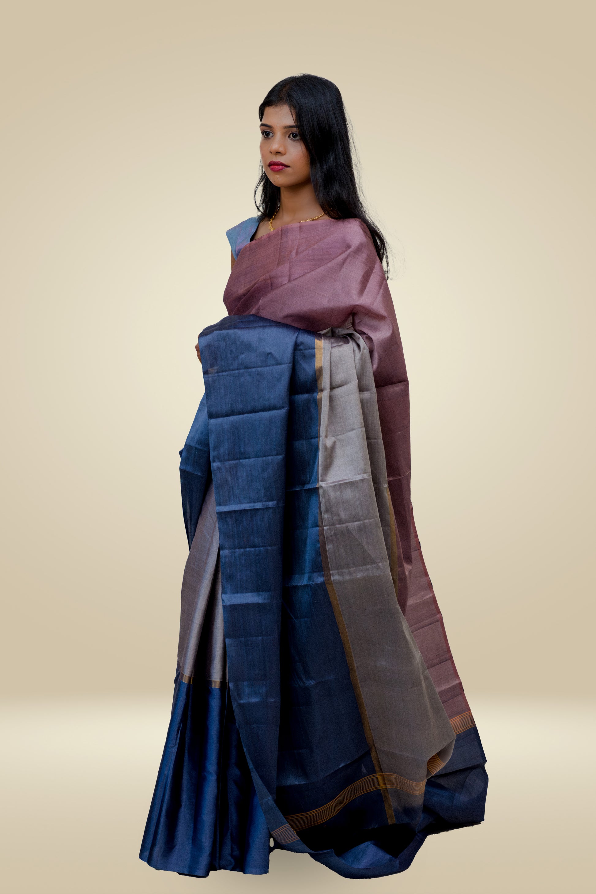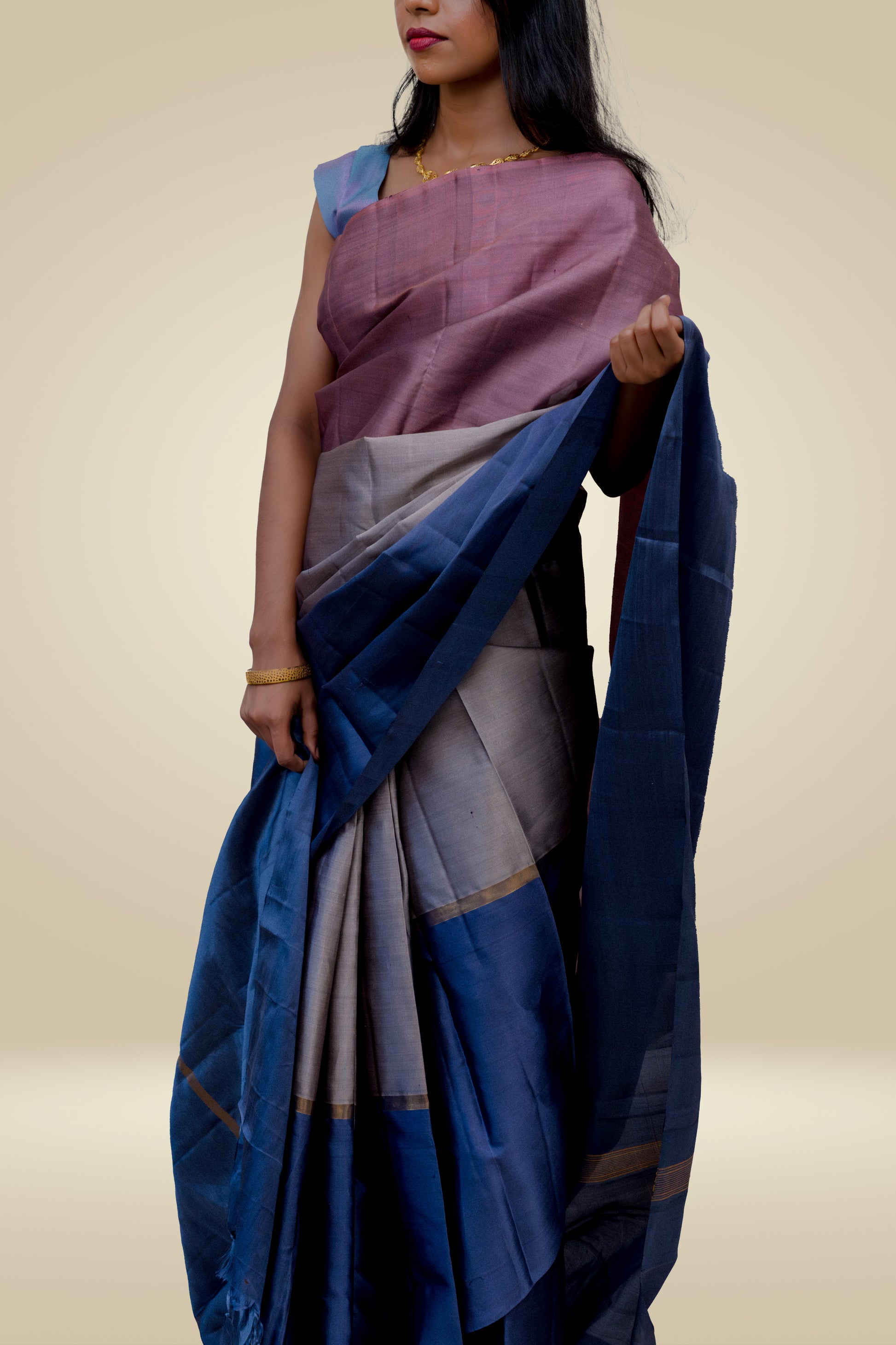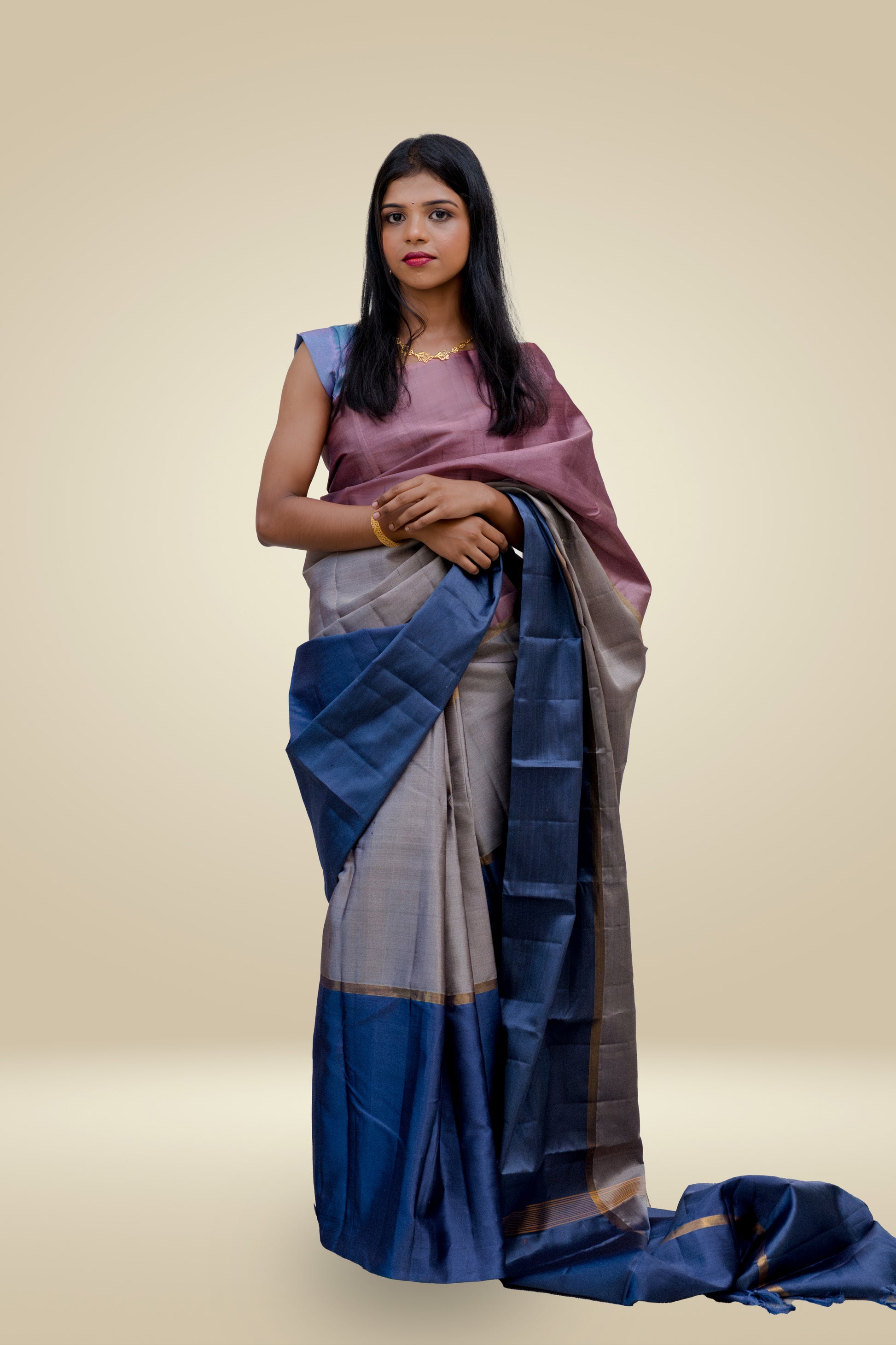 Experience the timeless elegance of South Indian tradition with the Blue Orchid silk saree.